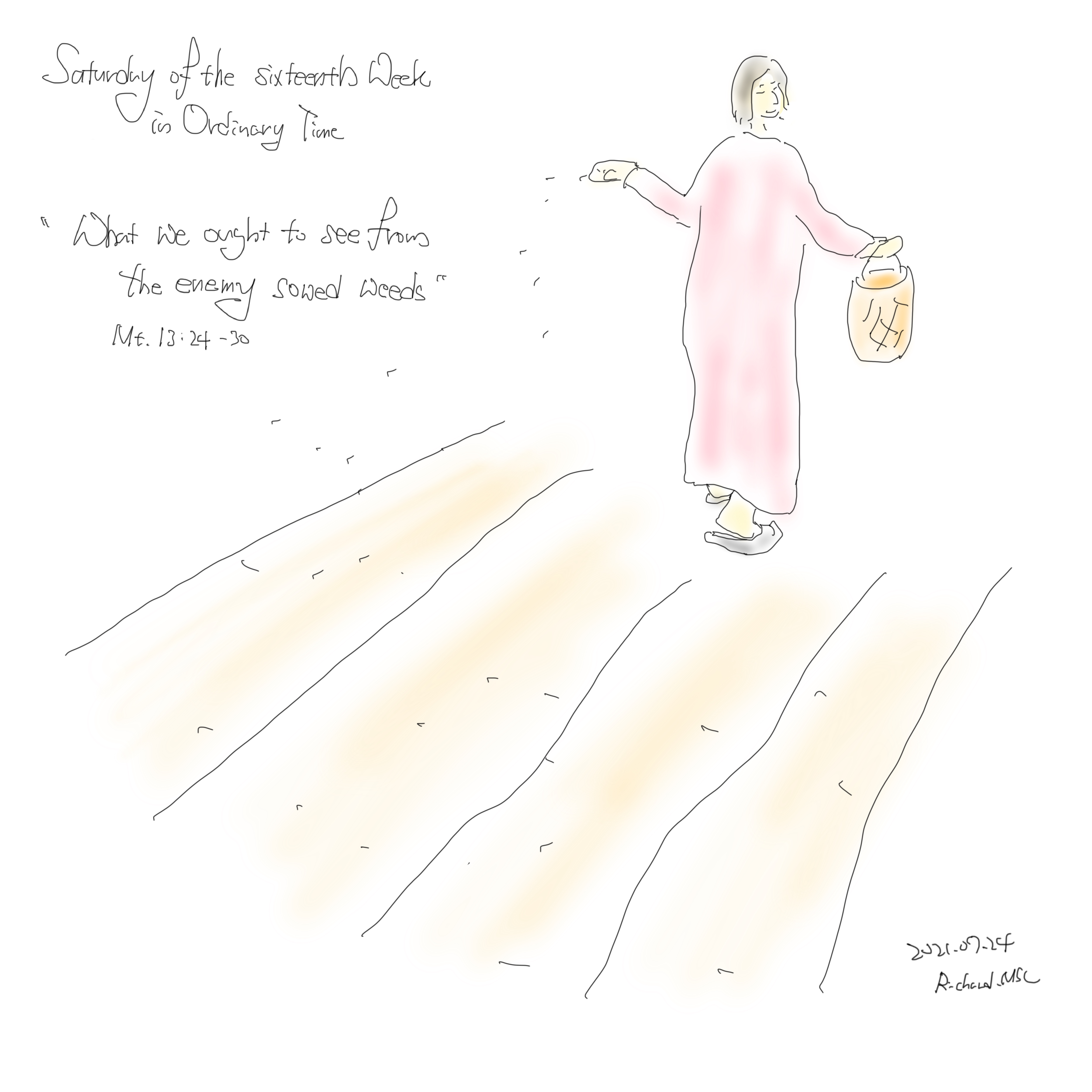"좋은 씨를 뿌리는 사목자가 되고자 하는 나는, 한 두번의 좋은 경작에 혹시 만족하고 머물고 있지 않은가? 혹은 실망스런 결과에 다시 일어서지 못하고 쓰려져만 있진 않은가?"