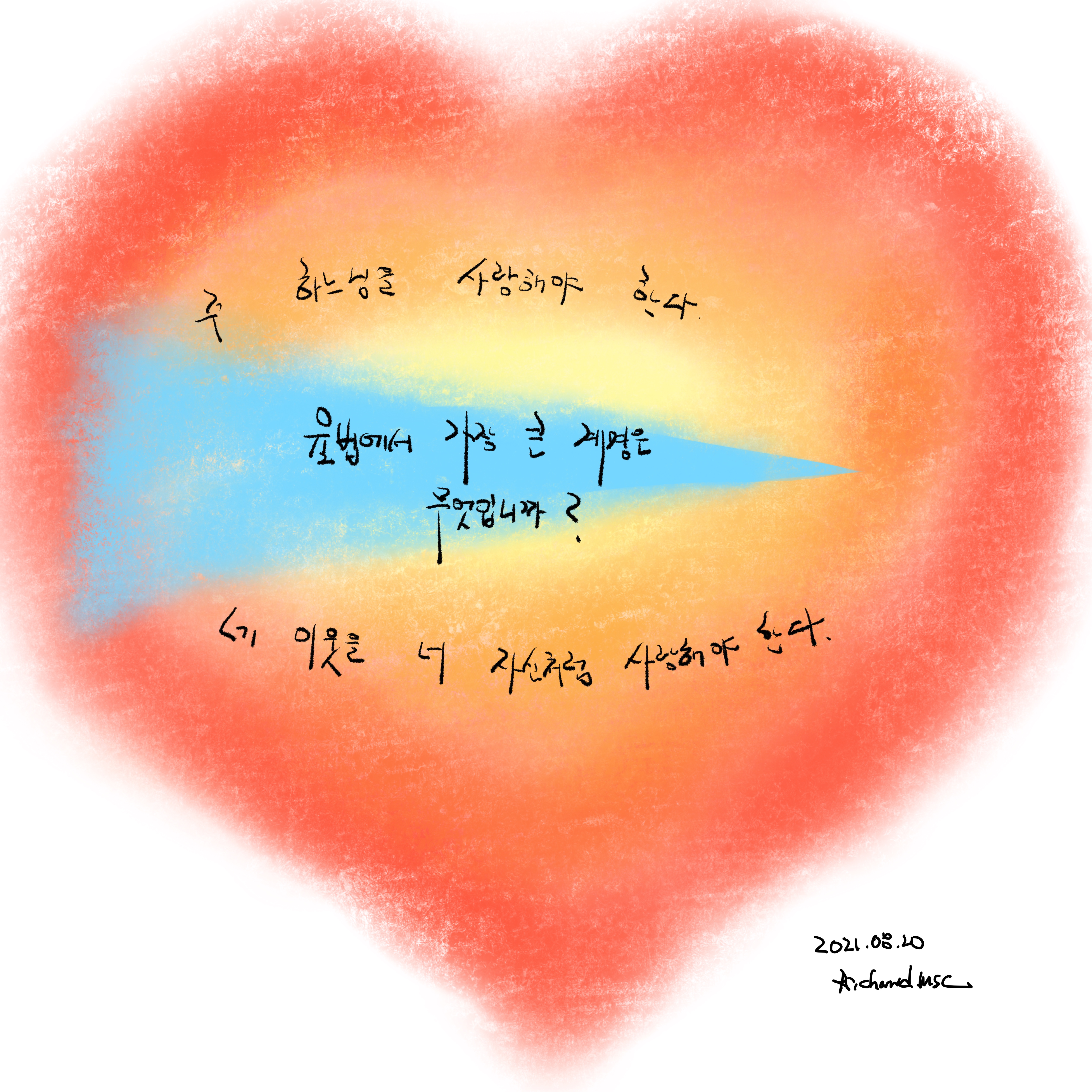 예수님을 이기고자 질문을 던진 바리사이들에게 이 예수님의 대답은 차갑게 들렸을지도 모르겠습니다. 예수님을 따르고자 애쓰는 이들에게는 부담으로 들렸을지도 모르겠습니다. 하지만 예수님을 사랑하는 이들에게 이 대답은 더 없이 따뜻하게 들렸을 것입니다. 사랑에 빠진 사람에게는 사랑을 애써 설명하지 않아도 되니까요. 그렇지만 저에게도 실은 자주 예수님과의 사랑이 식어 버린 듯하게 느끼는 때가 자주 찾아옵니다. 하지만 오늘 복음을 묵상하며 이런 생각을 하게 됩니다. 그리고 다시 사랑에 눈뜨게 될 때를 기다릴 인대를 조금 더 갖게 됩니다. 그 생각은 이렇습니다.