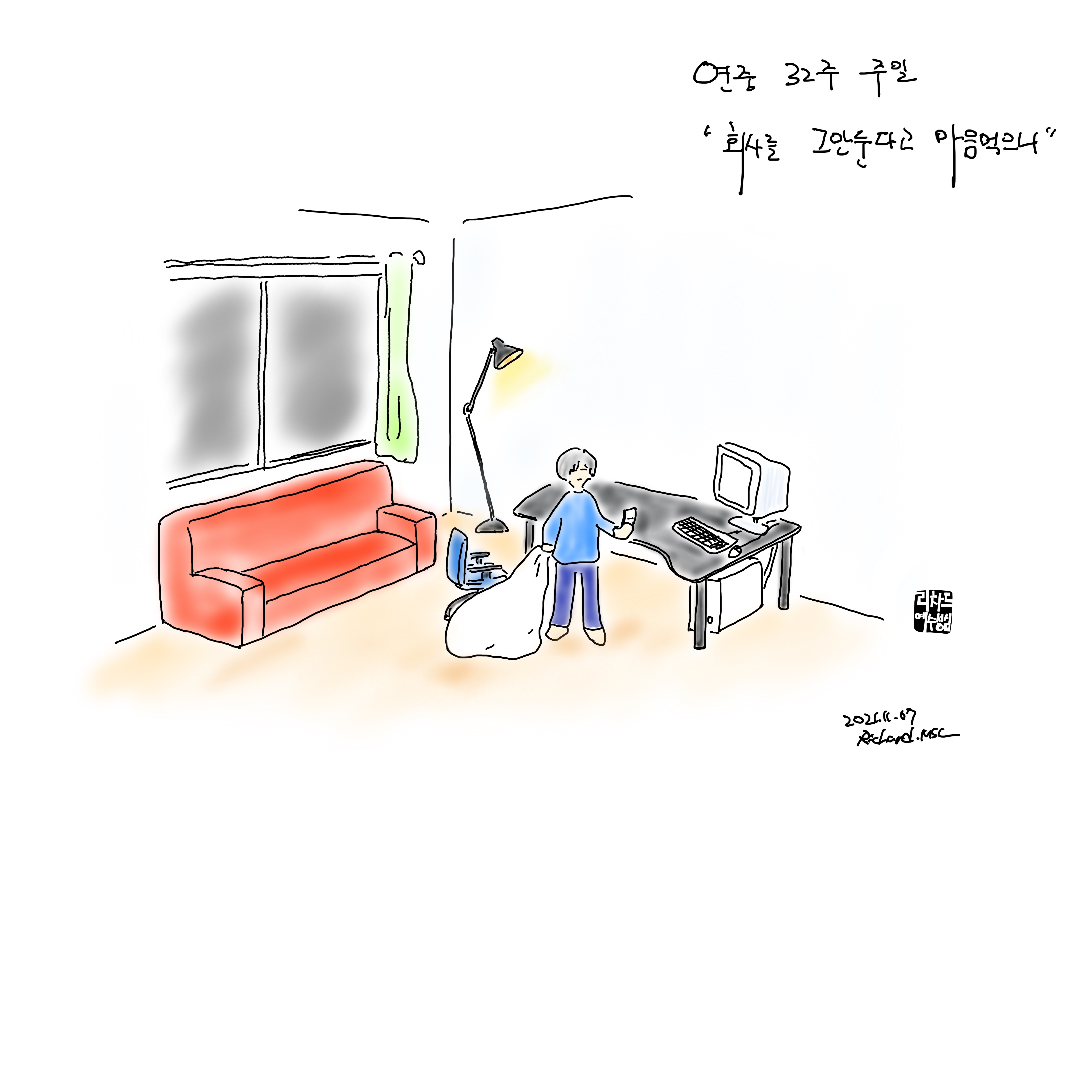 이제 곧 맞이할 죽음 앞에서 내게 찾아오는 것이 원한과 아쉬움과 두려움이라면 참 슬플 것 같습니다. 하지만 우리는 죽음과 부활을 삶을 사는 그리스도인들이니 그렇지 않습니다. 그렇게 죽음과 부활도 이 세상을 바라보게 하신 예수님의 삶이 너무나 감사한 일이라고 다시 느낍니다. 또 하나의 죽음과 부활의 시간을 가지는 우리 부제님을 위해서도, 또 좋은 체험의 선물을 받았음에도 잊기를 잘하는 저를 위해서도, 또 여러분의 매일에 죽음과 부활과 그것이 주는 가벼움이 가득하시기를 위해서도 우리 모두 함께 기도했으면 좋겠습니다. 오늘은 성무일도 끝기도의 마침기도로 달리 다가옵니다. 그 기도로 마무리할까 해요. 전능하신 하느님 이 밤을 편히 쉬게 하시고 거룩한 죽음을 맞게 하소서. 아멘.
