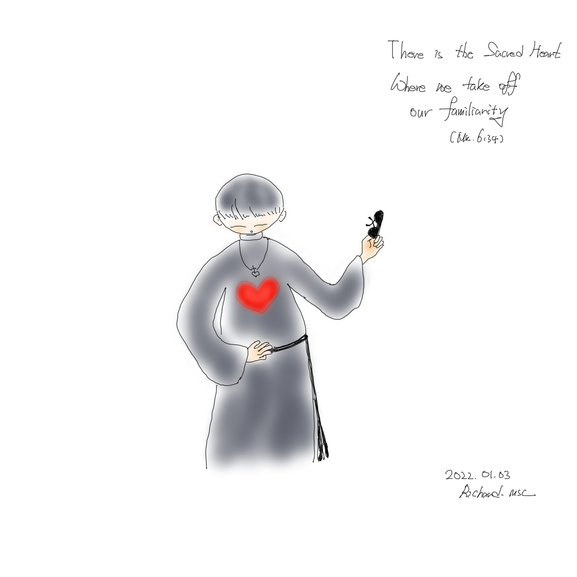 오늘 복음에서 우리는 이 익숙함이라는 필터를 분명하게 드러내는 예수님의 시선을 만납니다. 마르코 복음 6장 34절에 이 것이 잘 나타나 있습니다. "많은 군중을 보시고 가엾은 마음이 드셨다." 이 문장을 묵상하며 예수님의 눈 앞에 펼쳐진 풍경을 예수님의 시선을 따라 따라가게 됩니다. 유다의 많은 영적인 지도자와 정치 권력가가 매일 같이 보던 풍경을 예수님은 익숙함이라는 필터를 걷어내고 바라보십니다. 그 곳에서 같은 시간을 살며 같은 풍경을 보았지만 예수님은 당신 성심의 눈으로 그 익숙함을 걷어내고 그것을 새롭게 바라보십니다. 그렇게 익숙함이라는 필터가 드러난 곳에 자리잡게 되는 것은 바로 예수님의 "가엾이 여기는 마음"이었습니다. 이 가엾이 여기는 마음은 예수성심의 가장 가운데 있는 마음입니다.