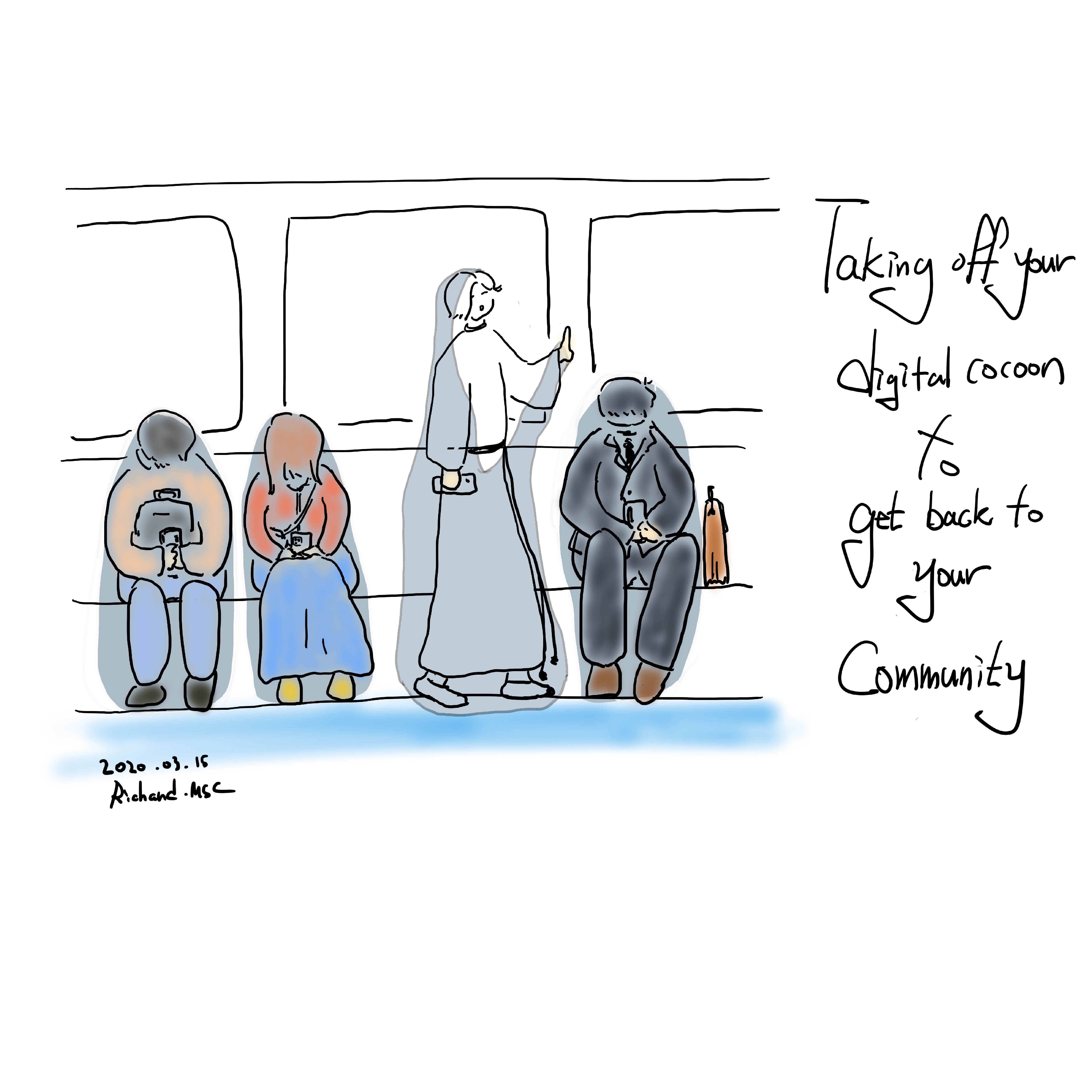 그런 모습을 우리는 디지털 누에고치라고 표현합니다. 카페나 지하철에서 심지어는 우리의 집 안에서도 핸드폰을 들고 스스로를 고립시키고 앉아있는, 디지털 누에고치 안에 숨어있는 사람들을 우리는 어렵지 않게 봅니다.