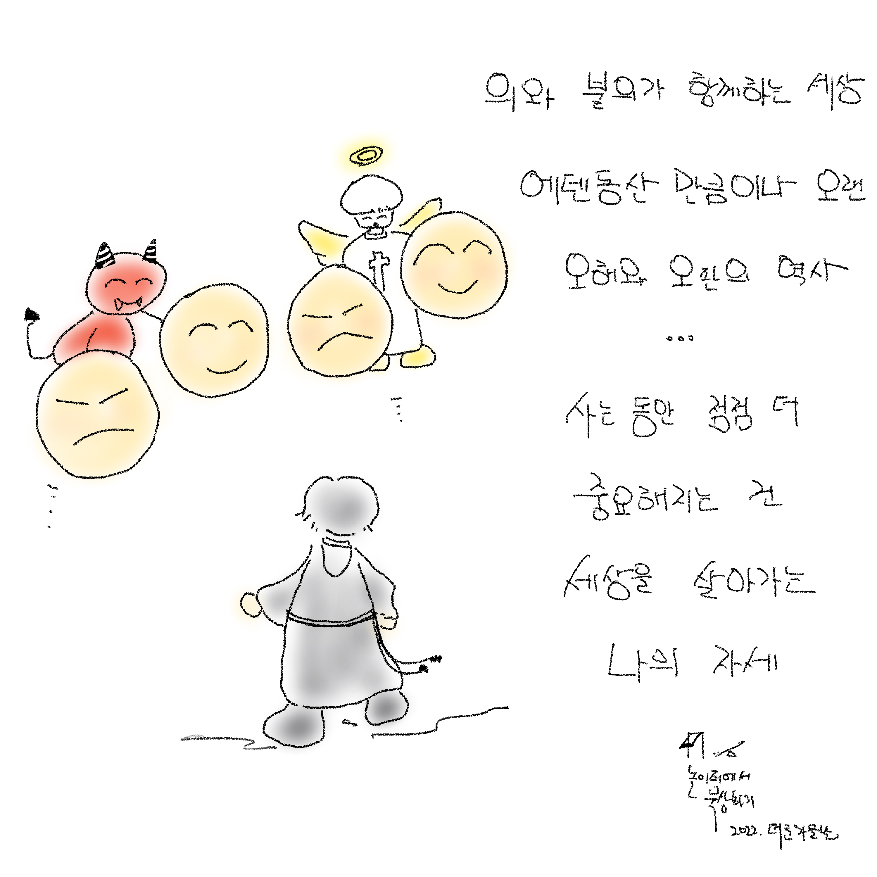우리는 좋은 것과 그렇지 않은 것, 의로운 것과 불의한 것, 의로운 사람 그렇지 않은 사람이 공존하는 세상을 삽니다.