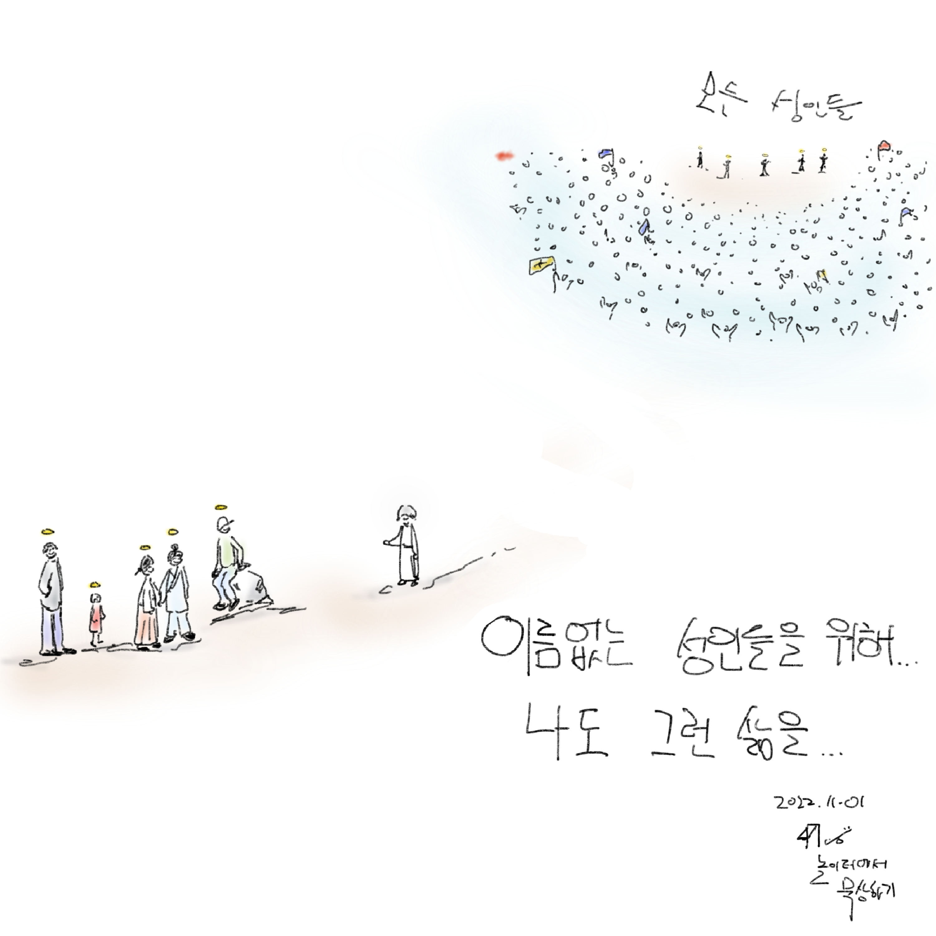This change did not come to me at once. It came to me little by little with time. And this change leads me to think that I have to pray not only for the saints who are not on our saint list but also for all the souls who have died following the way of Jesus but could not have any chance to be a saint. I now have a mere feeling that I have understood the meaning of "the poor in the spirit" and "heart is poor".