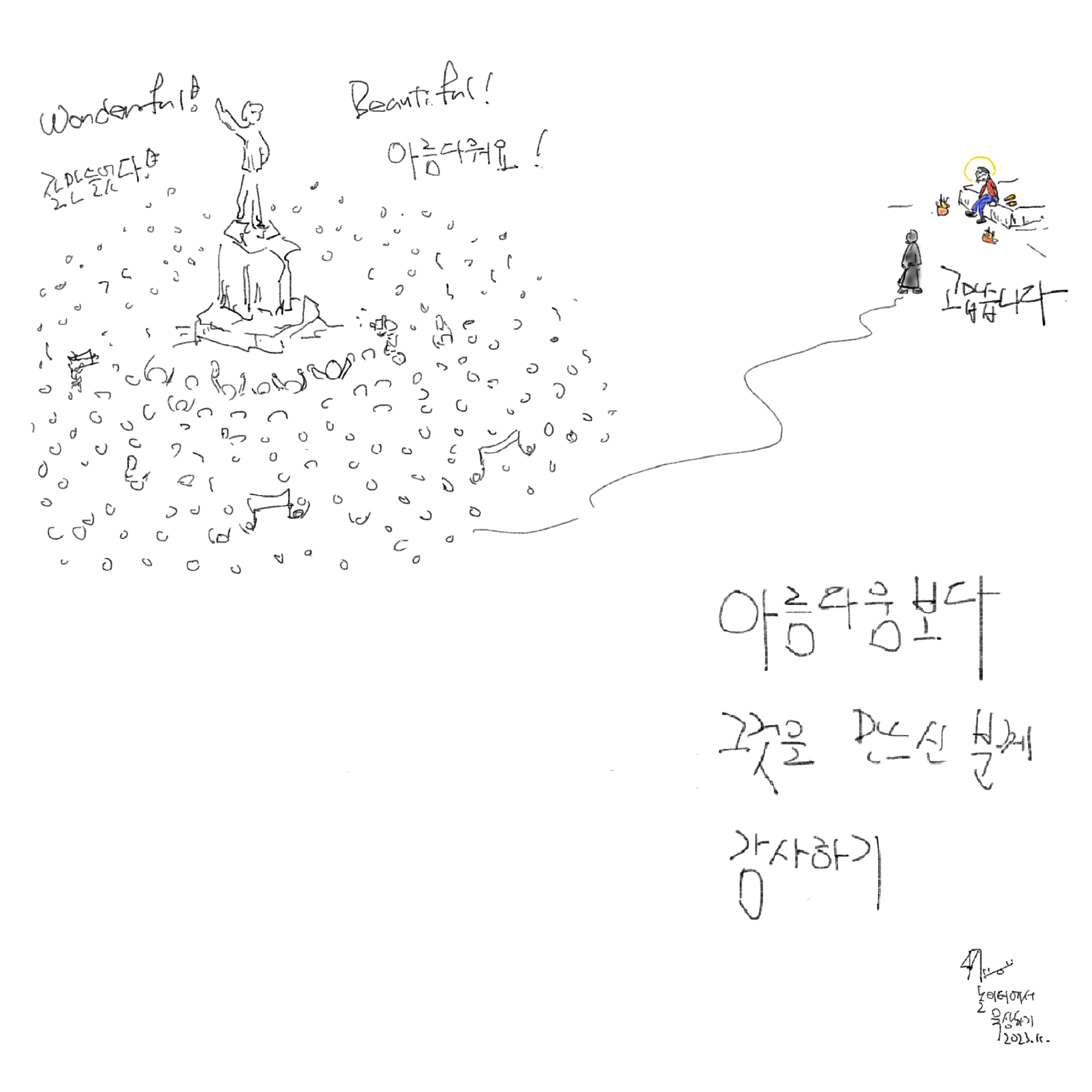 근래에 있었던 이 새로운 인연과 오랜만에 다시 만난 인연을 통해 제 삶에는 아름다운 추억이 더해졌습니다. 한 동안 마음이 따뜻했습니다. 마치 오늘 1독서 지혜서의 '눈에 보이는 것들이 하도 아름다워 그 겉모양에 정신을 빼앗기고 마는 것이다.'라는 말씀처럼 삶의 아름다움에 잠시 정신을 빼았겼었습니다. 물론 독서에서 이야기 하는 이들과 달리, 그 아름다움을 주신 하느님께 감사드리는 것도 잊지 않았습니다.