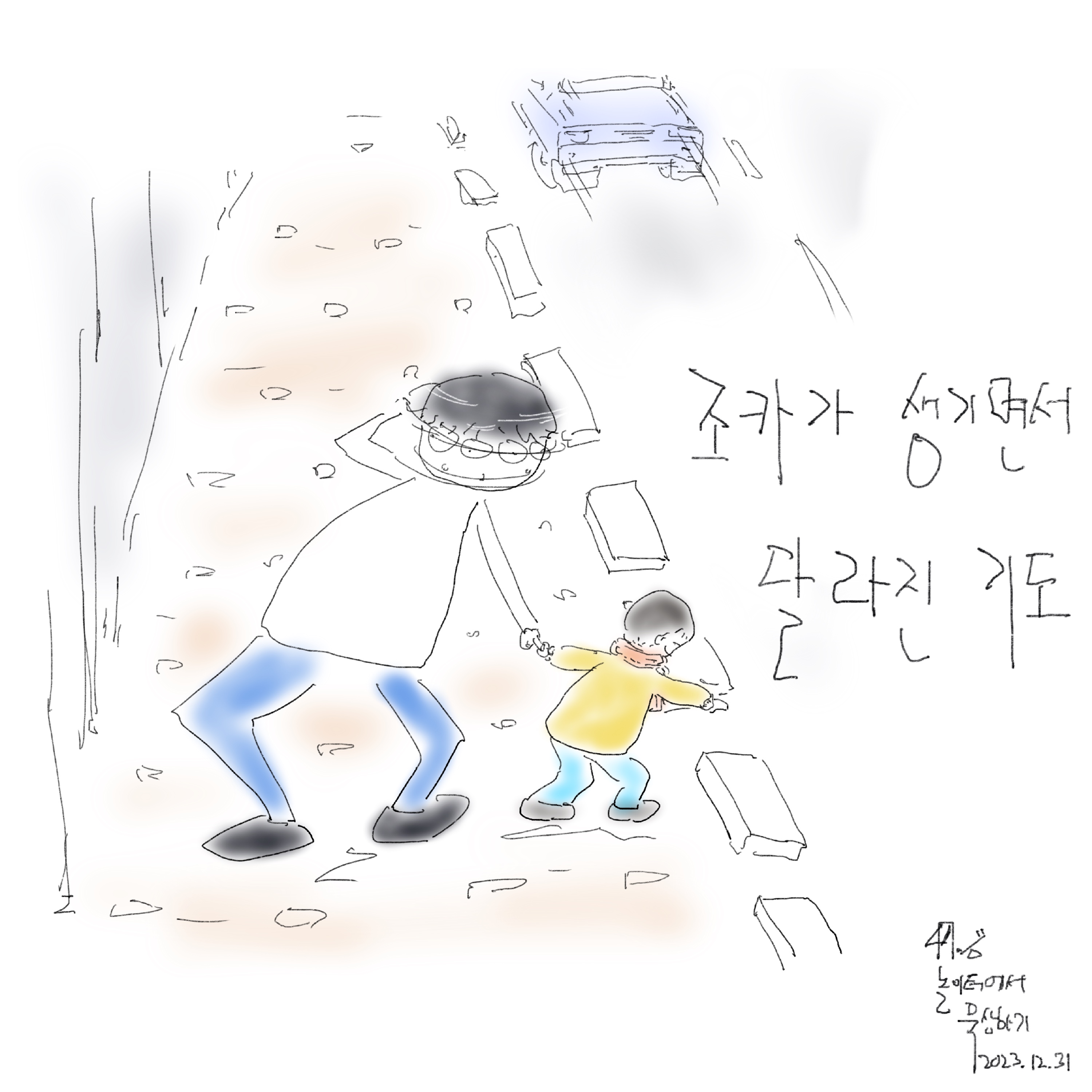 며칠 전 처음으로 조카와 외출을 나갔습니다. 조카의 고사리 같은 손을 잡은 저의 눈은 주변의 상점이나 하늘을 볼 틈이 없었습니다. 제 눈과 신경은 오로지 조카 주변에 머물렀습니다. 조카가 넘어졌을 때 혹시 조카를 다치게 할 만한 것들이 있는가를 살피고 미리 그것을 막아 서거나 피하는 것에 최선을 다할 뿐이었습니다.