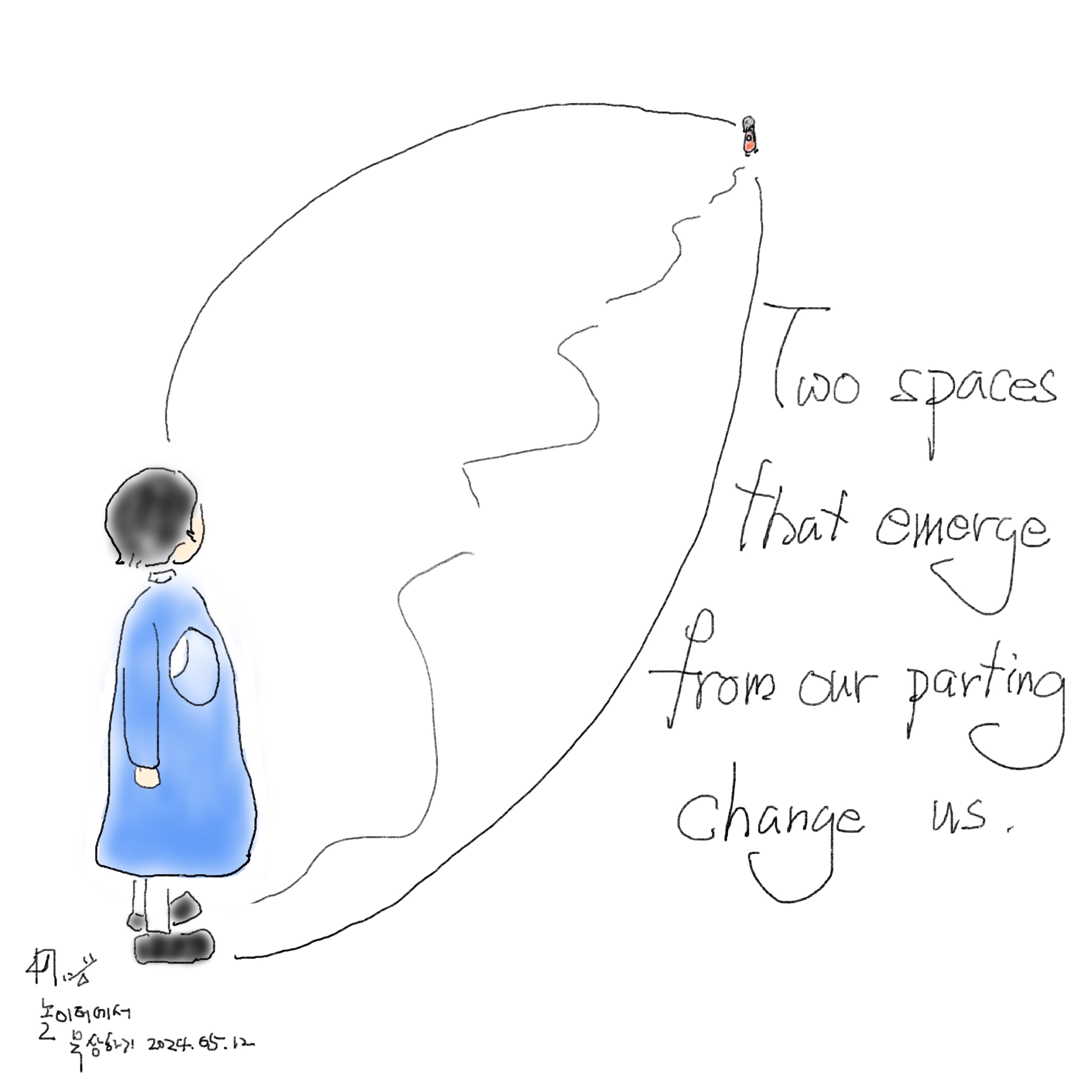 누군가와 헤어지면 우리에게는 두 가지 공간이 새롭게 생깁니다. 사랑하는 사람일수록 그 공간은 더 크고 더 특별합니다. 그 공간에서 많은 일들이 일어나고, 우리는 거기서 일어나는 일들에 의해 변화합니다. 성장하기도 하고 망가지기도 합니다. 다시 만날 수 없는 사람과의 헤어짐도 그렇고 다시 만나기를 기다리며 하는 헤어짐도 마찬가지입니다.