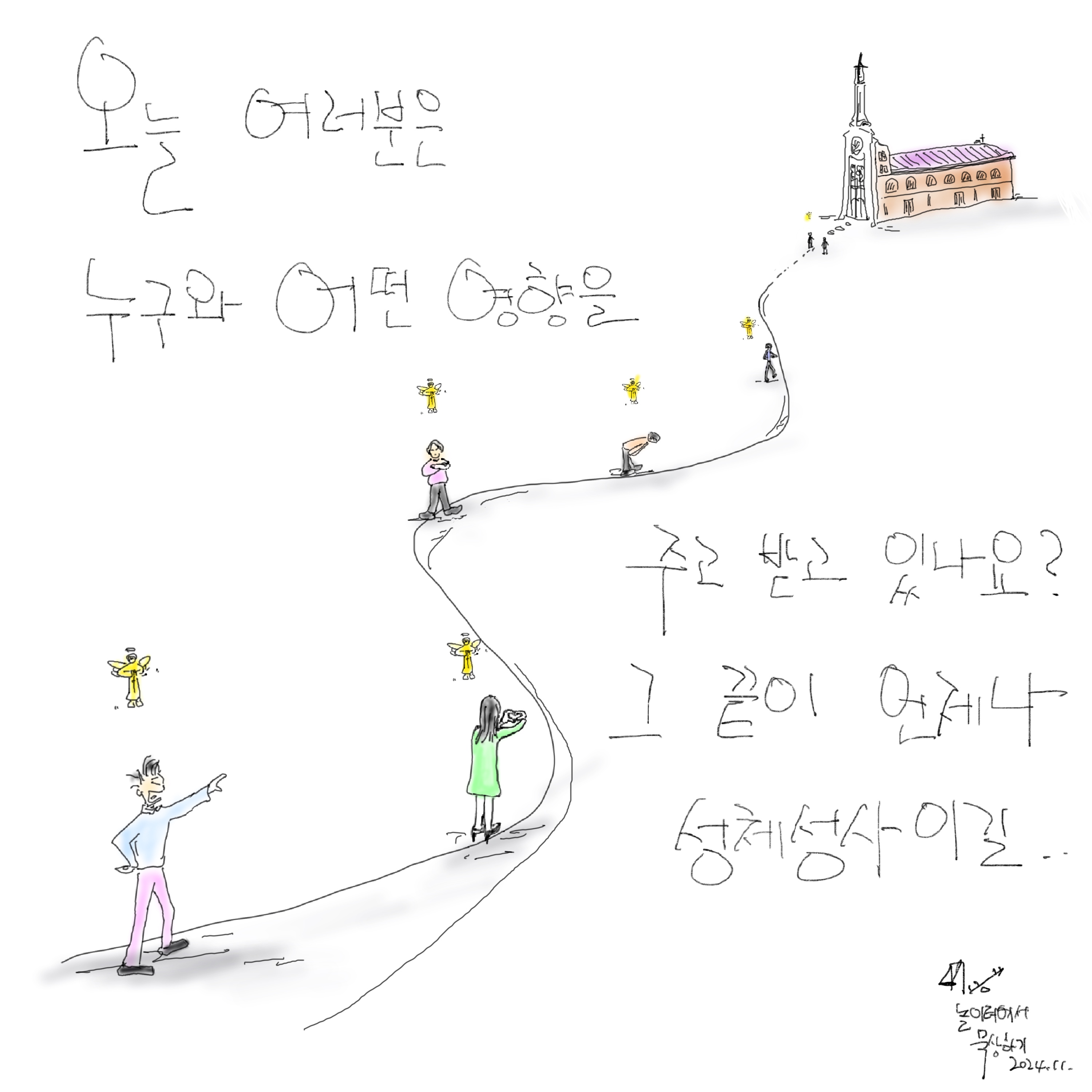 잠시 어제나 오늘 우리가 만났던 사람들을 한 번 떠올려 봅시다. 우리는 누구 누구를 만났습니까? 그리고 또 한 명식 떠올리며 생각해 봅시다. 여러분은 그분에게 또 그분은 여러분에게 어떤 영향을 주었습니까? 여러분은 그분들을 예수님께로 이끌었습니까? 아니면 여러분은 그분들이 예수님께로 가려는 것을 막았습니까? 또 그분들은 여러분을 예수님께로 이끌었습니까 아니면 막았습니까?
