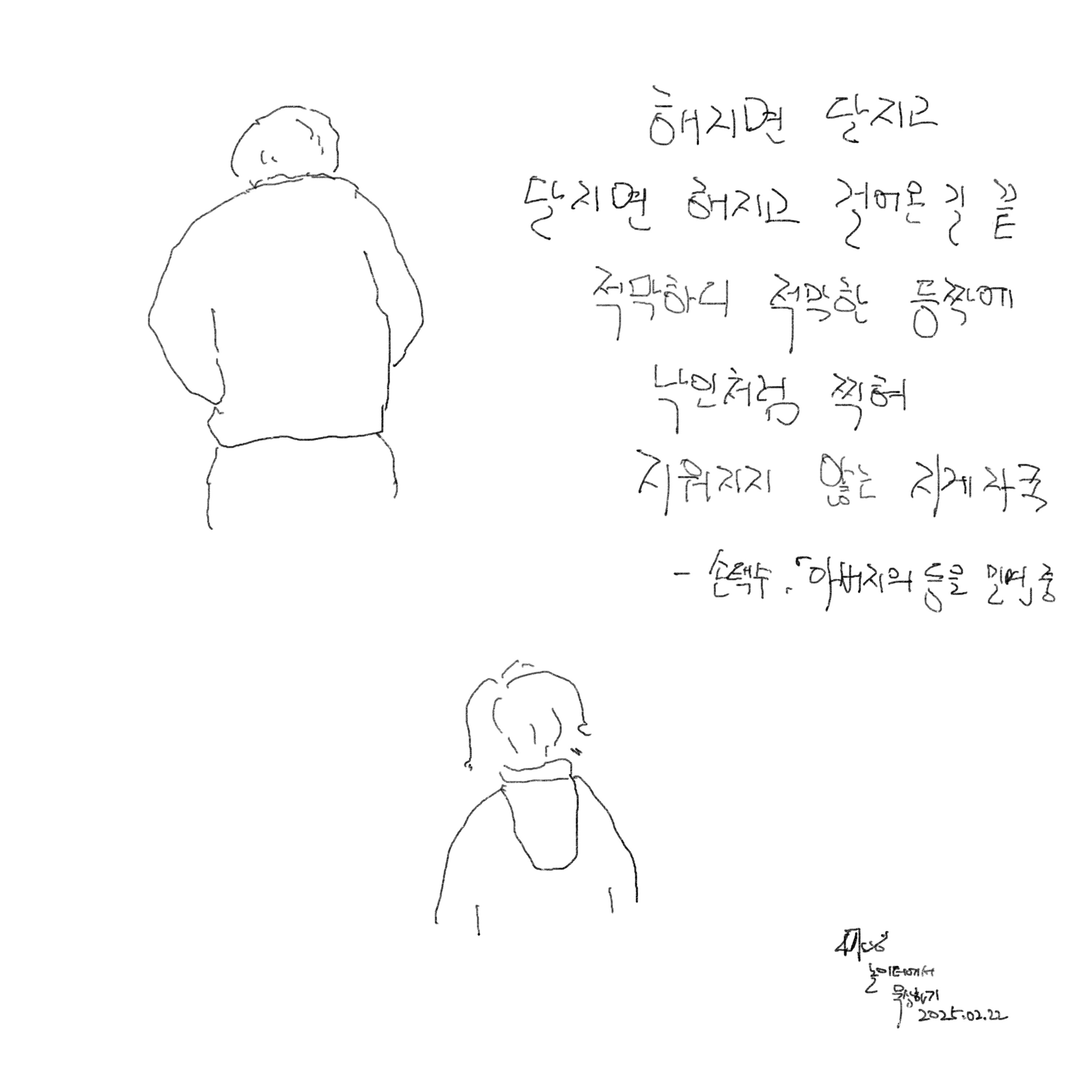 지게자국이 남아있진 않지만, 해 지면 달지고, 달지면 해를 지느라 쳐져 내린 등을 한 아버지는, 부끄러워 더 말 못 하고 전화를 끊었던 거다. 나는 오늘 아침에도 몰랐던 거다. ‘그러면 마 됐다. 다음에 보자’라는 말이 ‘임마 많이 보고 싶다’라는 말이라는 걸.