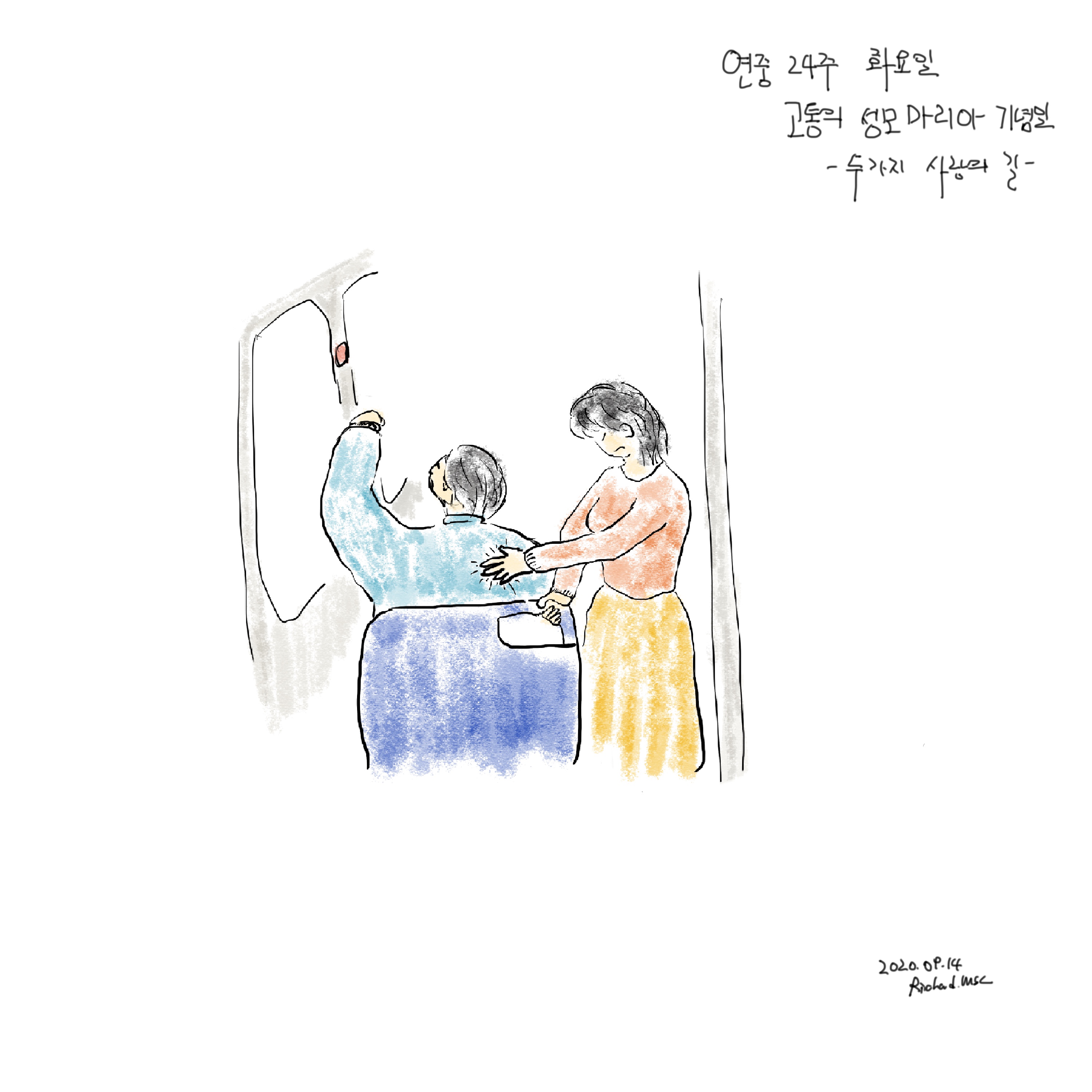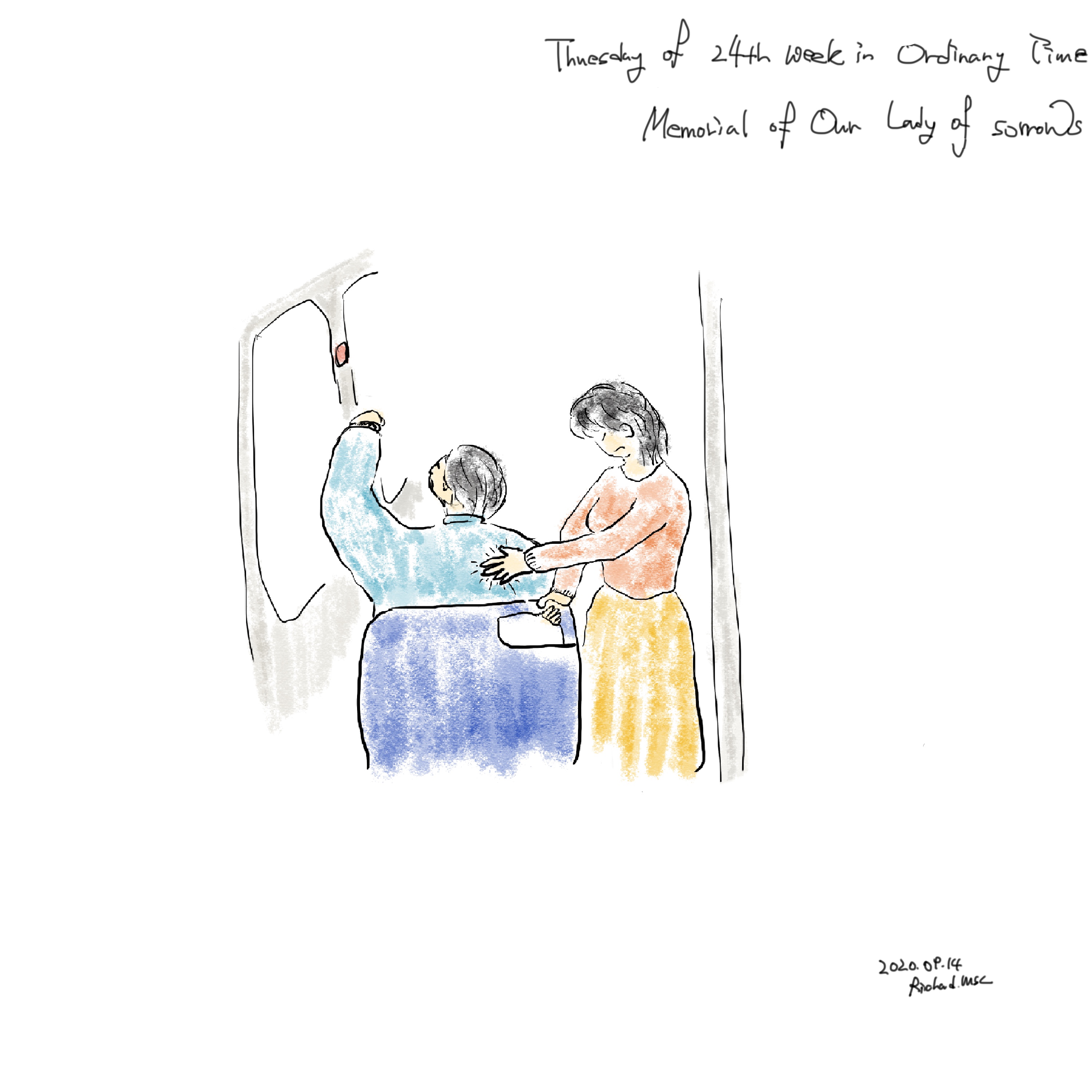 When I was a novice, I had volunteer work at a welfare facility. On my way back to Noviciate, I often saw a mother got on the bus with her son who is bigger than her. Most of the time mother was yelling at her son "Behave, Sit, Be quiet" and sometimes she even slapped his back. "bang." I got so upset at first. But as I saw them again in the following weeks, I could understand why she had to treat him like that, and I could see how much she loved her son. Her son was a mentally and physically disabled person. Is she did not treat him harshly, he would have irritated or harmed people on the bus. She was doing her best for her son.